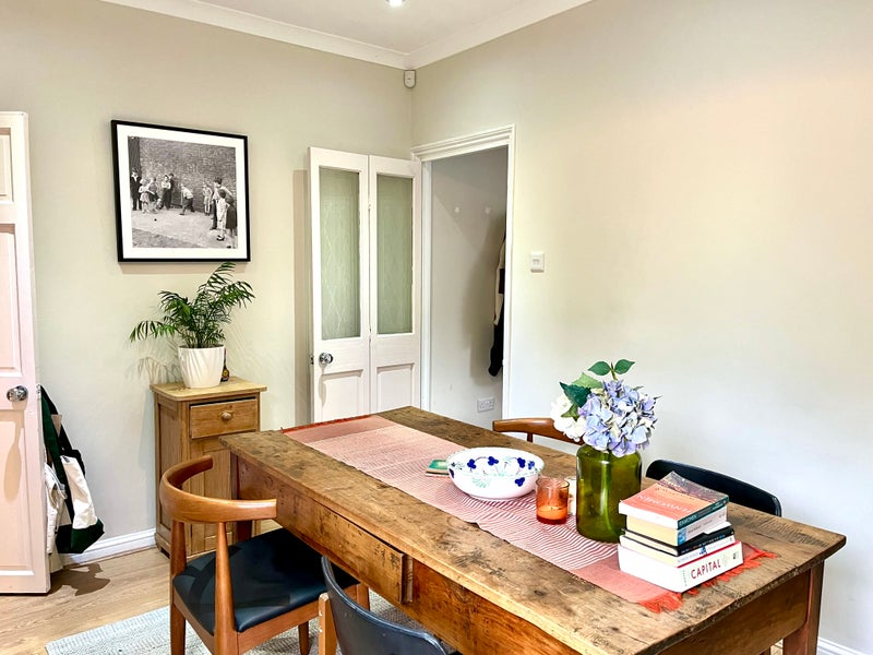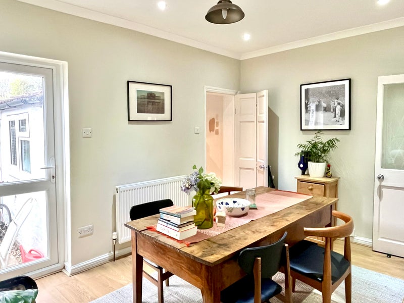 The room gets loads of natural light and overlooks a quiet south-facing garden. The house has a connected living room and dining room, which gives it a lovely sociable feel.