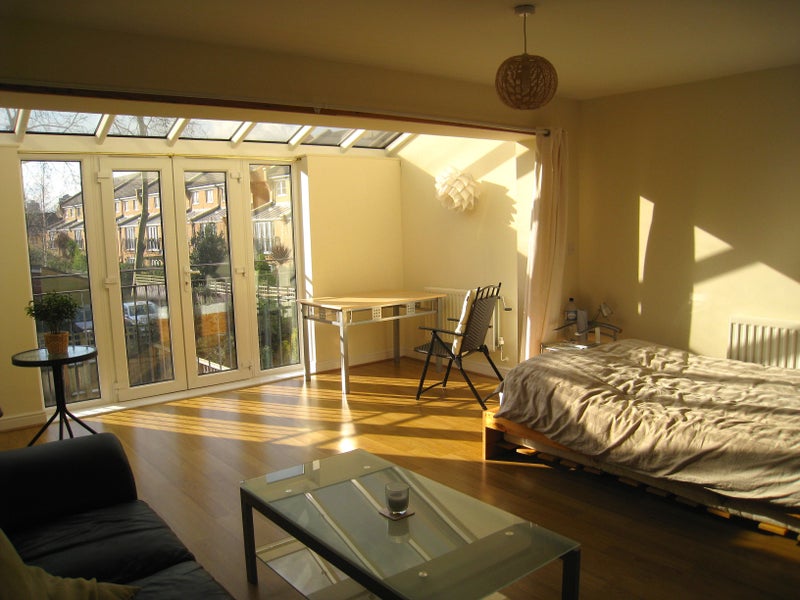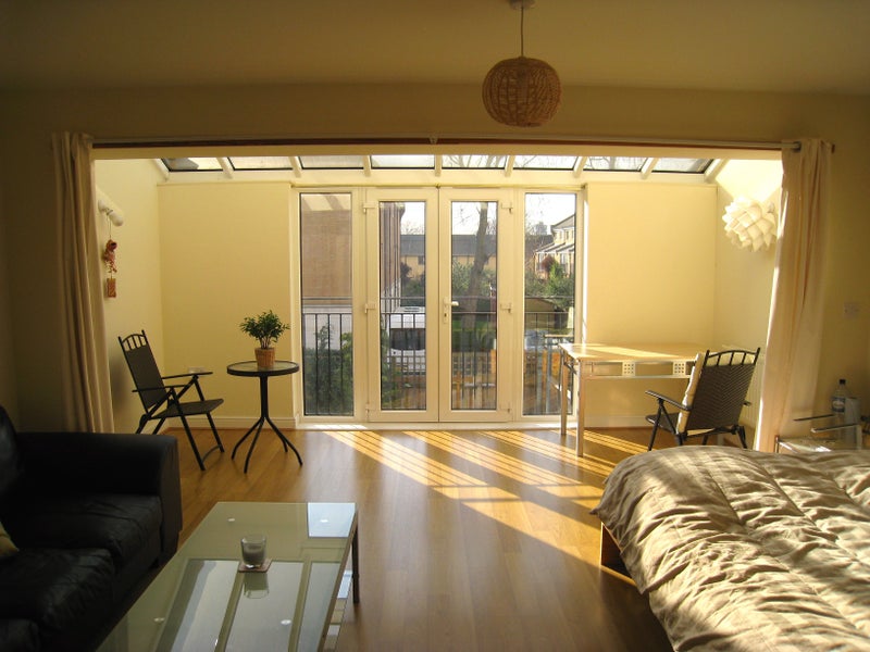 We have a large furnished double bedroom available in our terrace house in a newly developed area of Camberwell/Peckham. This beautiful bedroom is humongous, over 283 square footage (18.4ft x 15.4ft) or 26 square meters and benefits from having a French balcony and gorgeous glazed conservatory that's filled with natural light during the day. It is obviously ideal for people who love the sunshine and have lots of furniture. The bedroom comes with a double bed, very large wardrobe, large leather sofa bed, large chest of drawers, coffee table, bedside table, study desk and chair. It is located on the first floor of the house, which also has several bathrooms, large kitchen and living room, garage, large back garden, along with 3 other bedrooms. The house is only 11 years old and is located in a quiet gated area (security password protected), and is a stone's throw away from the newly renovated BBQ-friendly huge Burgess Park with a fishing lake. There are four large supermarkets (Tesco, ASDA, Morrisons and Lidl) within easy walking distance, as well as a Tesco Express literally just around the corner.