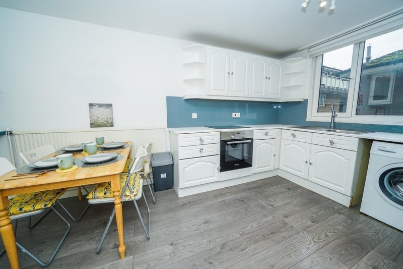 The Space: A comfortable, fully furnished flat featuring a modern kitchen and a clean bathroom.