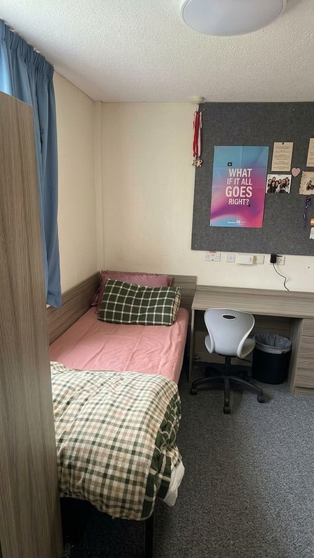 - Single bed, wardrobe, desk, chair and plenty of storage
