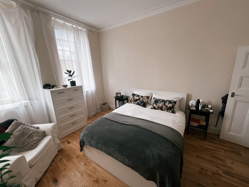 The room has a nice high ceiling and plenty of natural light, is fully furnished with a kingsize bed, cupboards etc. (as in pictures). This can be added to & we can remove pictures, rugs etc. as the tenant prefers.