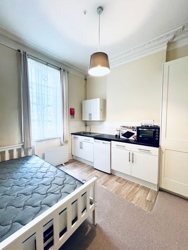 A bright and spacious bedsit located on the 1st floor rear of a beautiful white stucco house, overlooking a quiet, tree-lined street in Pimlico.