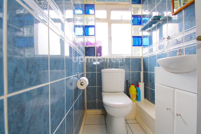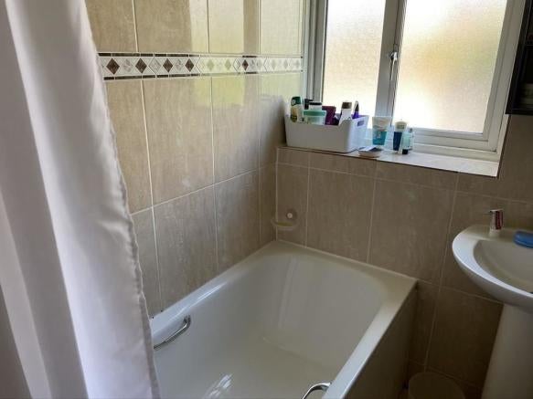 Fully tiled bathroom with thermostatic shower mixer, separate WC.