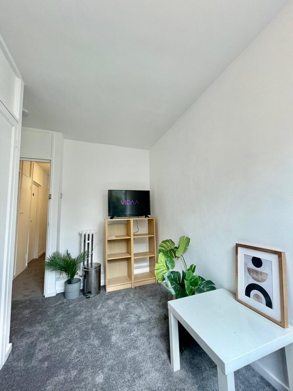 The room is a nice size with a double bed and built in wardrobe. You’ll be sharing the kitchen, bathroom, toilet, and living room with 2 lovely girls. They are clean and friendly and love a chat or film night when possible.