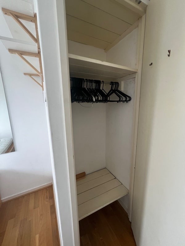 The room is small and doesn’t have much storage space, but there is a spacious wardrobe in the hallway which can be used as a second closet if needed. There is also further storage space throughout the house. It's south facing so gets lots of light during the day.