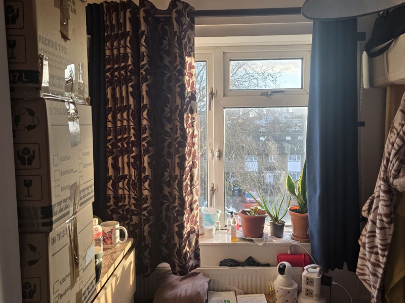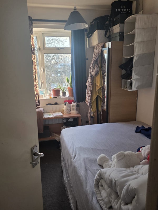double room painted white clean and comfy furnished with bed draws and wardrobe bills are paid for balcony included clean air