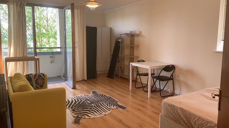 Expedius is pleased to offer this extremely large room, which feels like a studio flat, with balcony access and stunning river views. There is also a two-door wardrobe, two large chests of drawers, two sofas, and a dining table. (There is parking available.)
