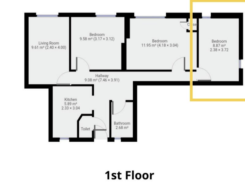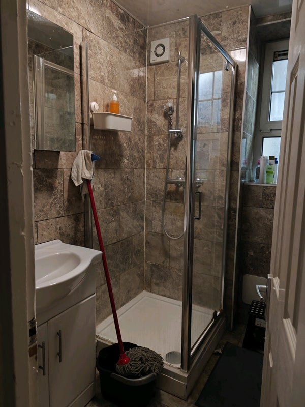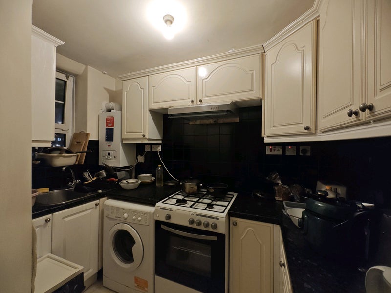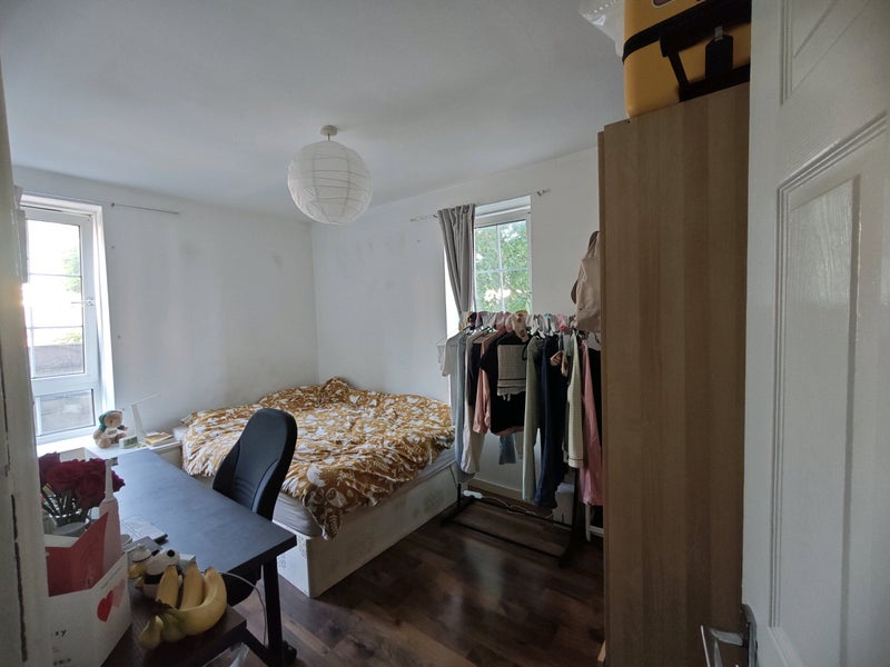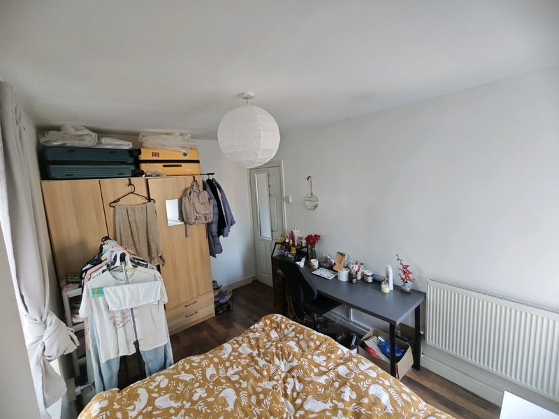 Located on 1st floor, the double room comes with a big wardrobe, double bed, storage units and mirrors. (I can leave my desk here if wanted). Kitchen and shower room are both shared spaces which are cleaned regularly, along with a separate toilet.