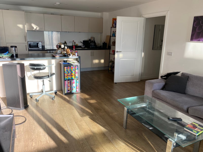 4th Floor Flat. Plenty of storage and natural sunlight. Includes a private balcony, a bright open plan kitchen and a spacious living area. 75 inch TV included.