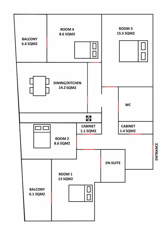 4-bedroom shared apartment