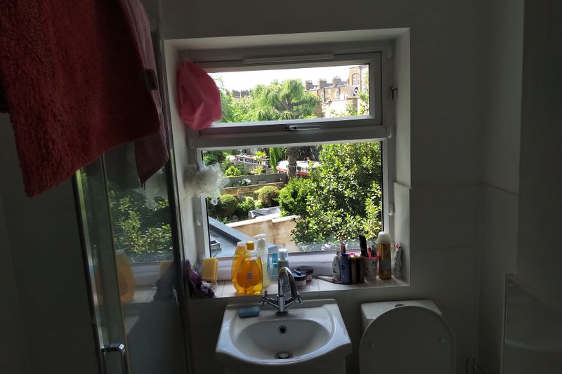 The house is 4 storeys, quiet and a little scruffy. The garden backs onto the Regent’s Canal and there are beautiful views. It is near Regent’s Park and Primrose Hill village. The house is 10 minutes’ walk from Camden Town station and 11 minutes to Chalk Farm. The room is on the top floor: 3.4 x 2.1 metres (11ft x 7ft). There are other rooms that might be possible to convert to study in. The kitchen has a washing machine and a dishwasher.