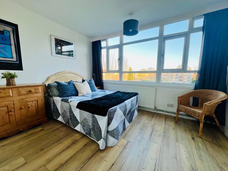 All five very large double bedrooms have full width windows and lots of natural light. They are peaceful, very private and very specious with double beds, chest of drawers, lots of storage, plenty of space and desks when you wfh. Two full bathrooms with showers and large upstairs hallway are separating the bedrooms.