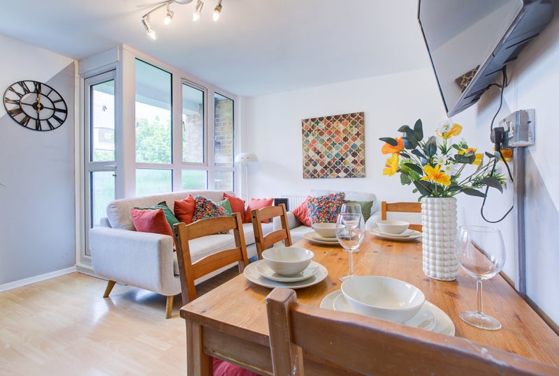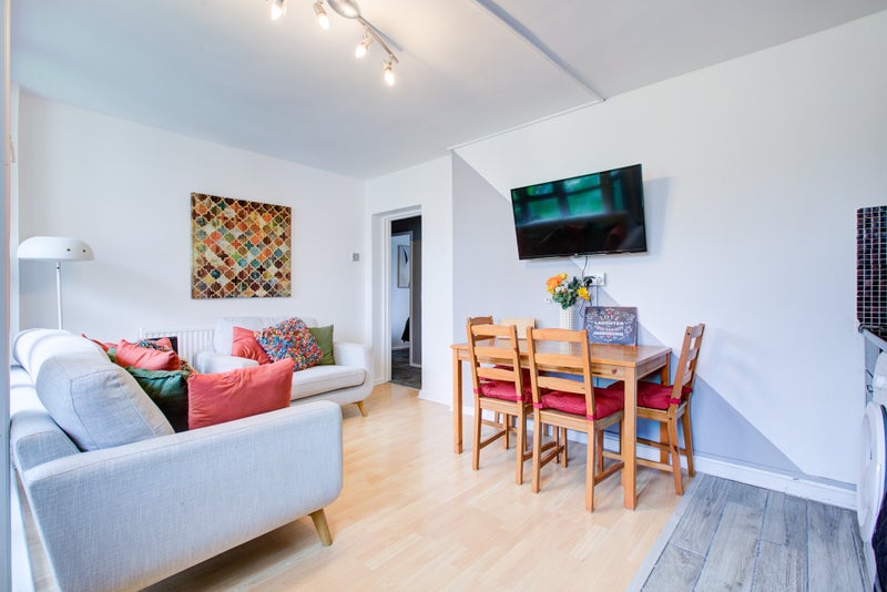 This property features a beautiful modern open-plan kitchen, lounge, and dining area that opens onto a private balcony over-looking the Estate gardens. This is the perfect home for those looking to balance WFH with socialising with housemates and friends.