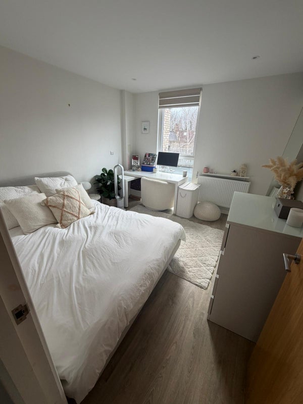 The room is in a 3 bed flat with two other girls who are very easy going, sociable people who like to keep the flat tidy. Both working hybrid mix between home and the office.