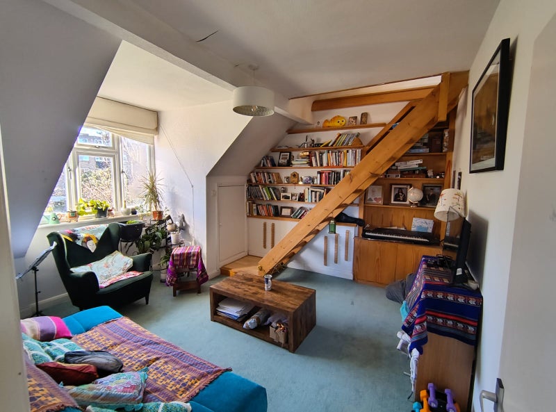 2nd floor flat available for 1 year from 1st May, offered part-furnished (can be discussed further).
