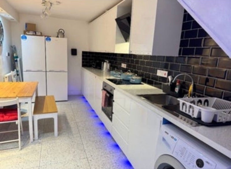 The flat itself has 2 bathrooms each with a toilet and are both communal. Big fully equipped kitchen with 2 fridge freezers so plenty of space for all your shopping, and also has a washing machine and a dryer. The room comes with a double bed, wardrobe, drawers a desk and chair and a big mirror