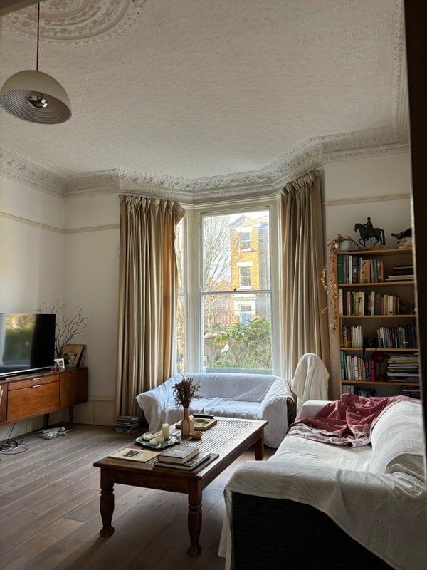 Nice and cozy two bedroom Victorian flat with high ceilings and a shared garden. Kitchen includes washing machine and dishwasher. The overall vibe of the flat is peaceful, relaxed, and charming.