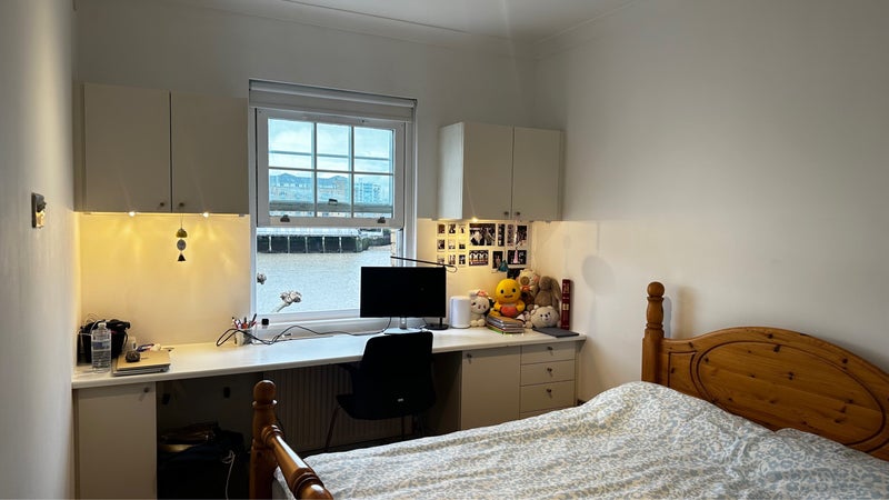 A lovely and comfortable en-suite double room available right by the Thames. You can move in straight away — cooking utensils, pillows, duvets and bed sheets can all be provided.