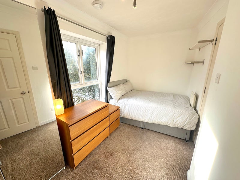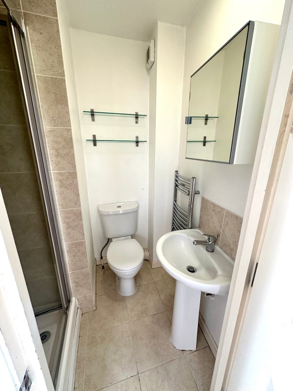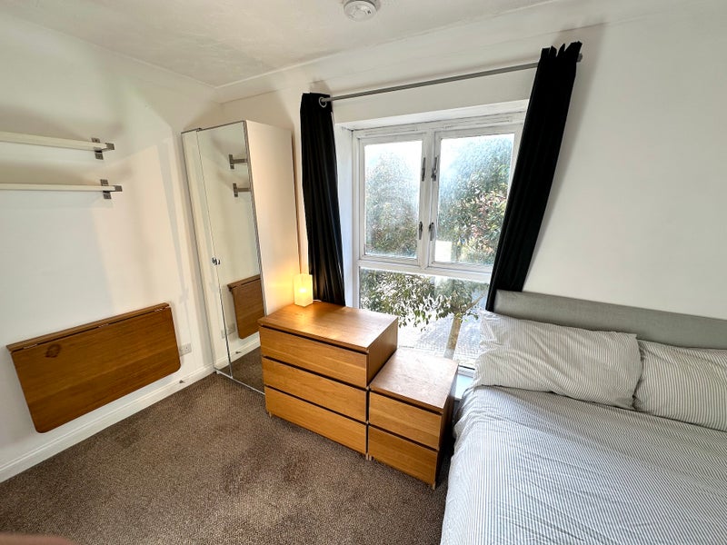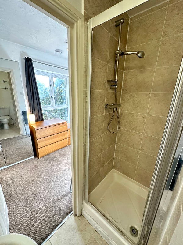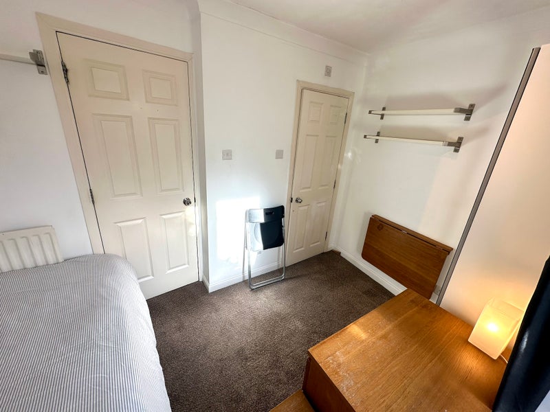 The room is newly refurbished to a high specification with a double bed, full-length mirrored wardrobe, draws, bed-side table, shelves and a fold-away desk. The room has it’s own private en-suite with shower unit, toilet, sink and towel rail.