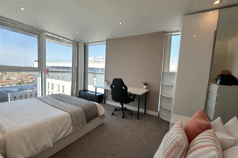 A bright, spacious double en-suite room in a top-floor penthouse, set along the tranquil Royal Victoria Dock. Perfect for a working professional or mature postgraduate seeking privacy, views, and premium living in Zone 2.