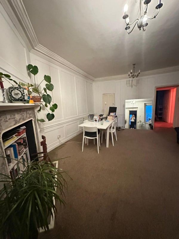 Step inside to discover a light-filled living space with timeless features, complemented by central heating to keep you cosy throughout the seasons. The flat is part-furnished, allowing you to add your personal touch while enjoying essential furnishings. The bedroom is generously proportioned, offering a peaceful retreat from the bustle of city life. A modern bathroom serves the flat, and each room benefits from large windows and high ceilings, adding to the sense of space throughout.