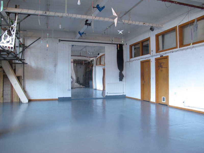 The rooms are huge and the space is huge. Two bathrooms, a large open plan kitchen, a mezzanine chill area with projector, communal table/dining area, and 2 large mirrored studio spaces.