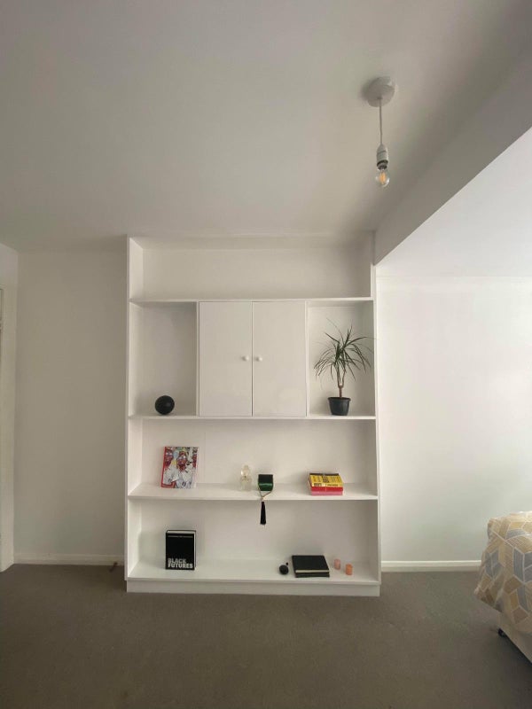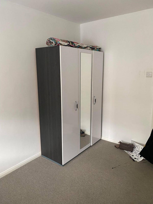 Sharing with five creative professionals in a big house two storey house with front and back gardens, bathroom/toilet suite (first floor), shower room (ground floor) & additional toilet (second floor). The room is on the ground floor of the house, and it comes semi-furnished - bed/mattress, wardrobe and shelving unit.