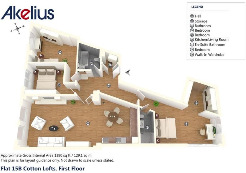 Bright and spacious, it has a huge living/kitchen area, 3 large double bedrooms (one with en-suite bathroom and dressing room), 2 modern bathrooms (one bath one power shower), a large hallway with storage, exposed brickwork and wooden flooring.