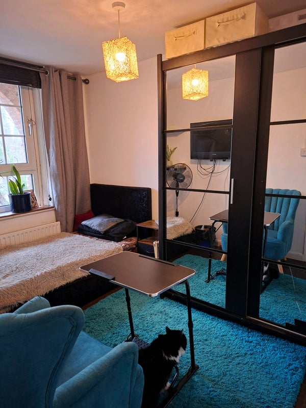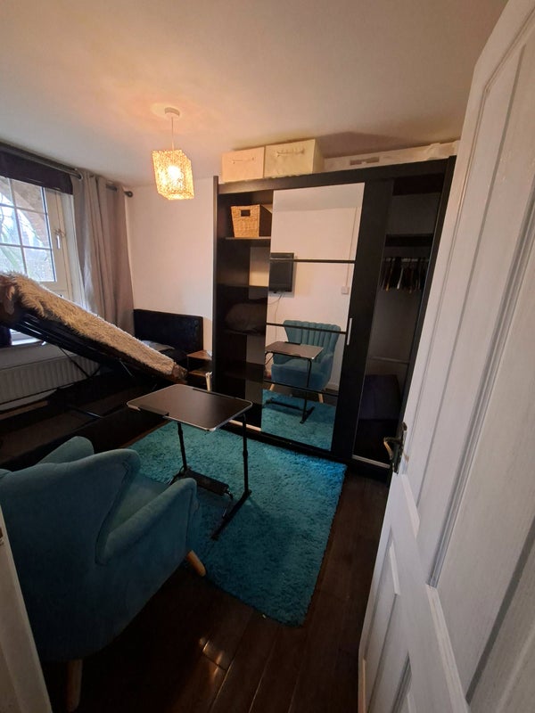 The bedroom comes fully furnished. It has been recently painted and has a soundproof ceiling installed alongside neighbouring living room where soundproof ceiling also has been placed. TV is also provided with cable programmes. Washing machine and the tumble dryer both provided.