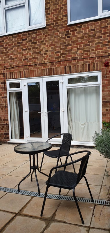 The house is tucked away in a dead-end road and surprisingly secluded. The owners stay in a self-contained annexe in the garden a few nights some weeks, but they don’t use the facilities in the main house. The house has generous shared spaces with a dining kitchen and a large furnished lounge with a television. The kitchen was re-furbished 6 years ago and is equipped with a washing machine and a tumble drier. There is a small, very sunny courtyard garden with seating and a barbeque for everybody to use. The recently re-furbished main bathroom has a shower over a bath and there is an additional downstairs toilet; the bathroom is shared by three lodgers as one room has an en-suite. The house has gas central heating with radiators in all rooms.