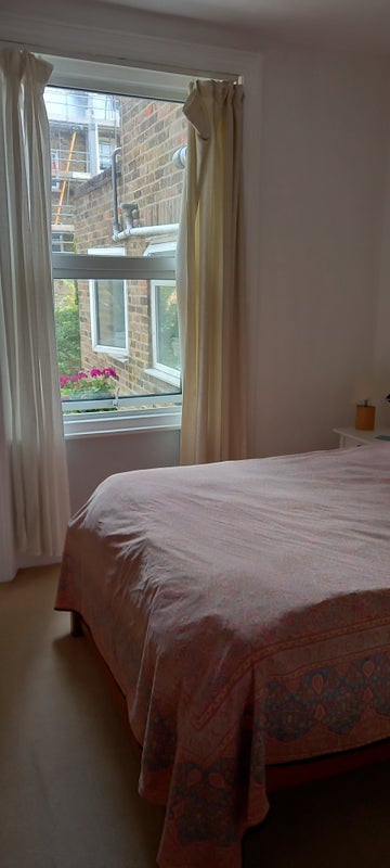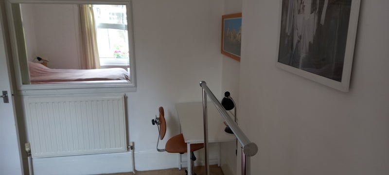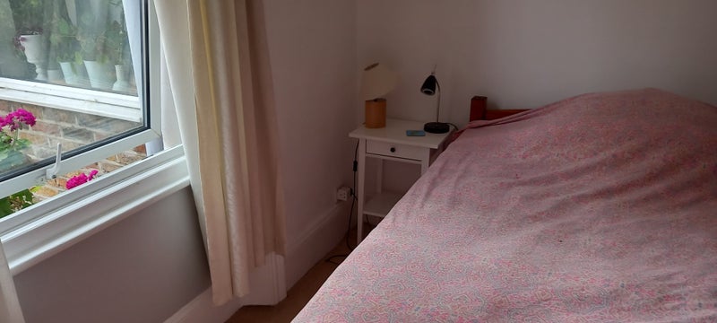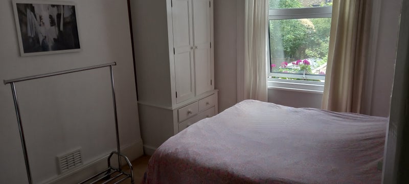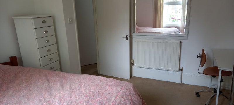 Nice, airy furnished room in Victorian conversion to rent. Safe & secure ground floor flat - spacious, high ceilings, natural light, desk, wardrobe. Fibre broadband. Bath tub/shower, washing machine.