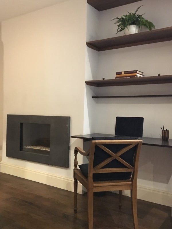 Bedroom: Large double room, king size bed with sky light, gas fireplace, desk, lots of storage and en suite shower bathroom (pictured)