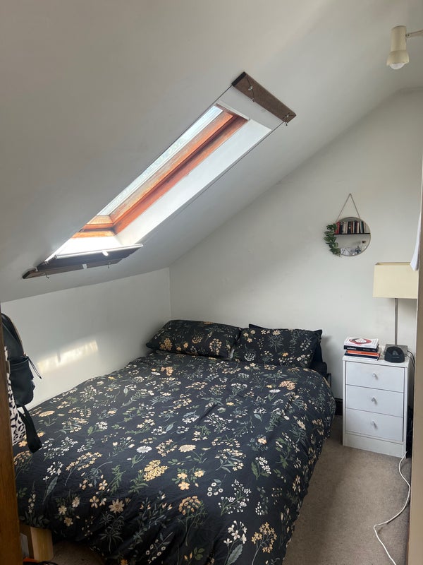 A spacious and bright attic room is available in a well-maintained 3 bed maisonette flat with a private roof terrace, two bathrooms, a large shared living room and a light-filled kitchen! ☀️