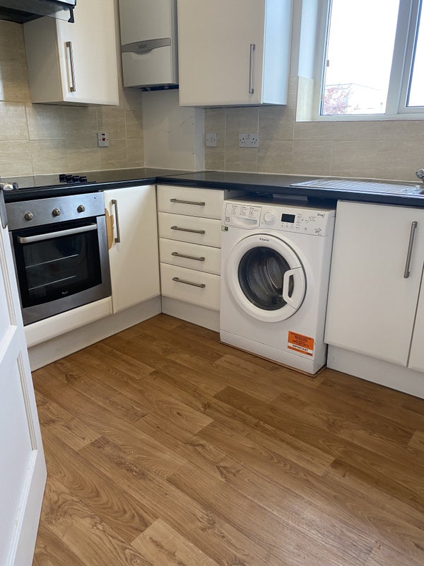 The kitchen is very bright and has a big fridge freezer, oven, washing machine and a tumble dryer!