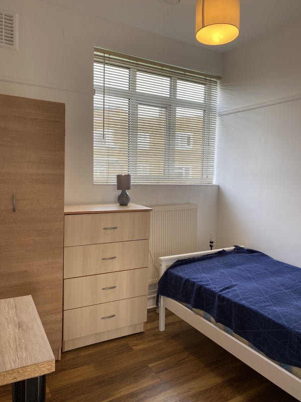 The room is bright and has got an inviting atmoshpere. It is of a good size with a single bed, mattress, wardrobe and a chest of drawers. The flat is immaculately maintained and is situated off the Uxbridge Road in a quiet, residential area; with delis, cafes, off licences, gyms and Ravenscourt Park is also 15 min from the property.