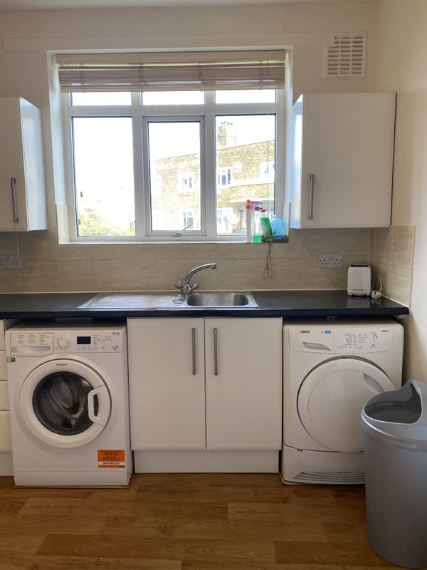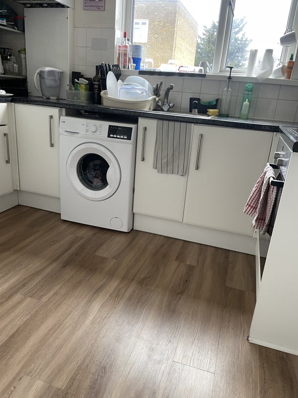 The kitchen is very bright and has a big fridge freezer, oven, washing machine and a tumble dryer!