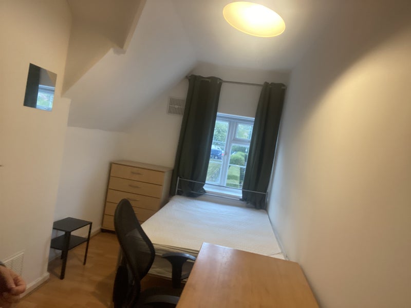 The room is bright, recently painted, has a new wooden laminated flooring with a bed & matress; there is a built in wardrobe and a chest of drawer. All bills are included in the room price.