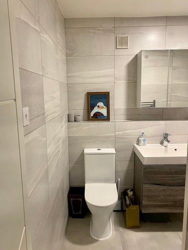 The flat is completely furnished and the kitchen is fully fitted with modern appliances. Separate living room with a big television with Sky channels.