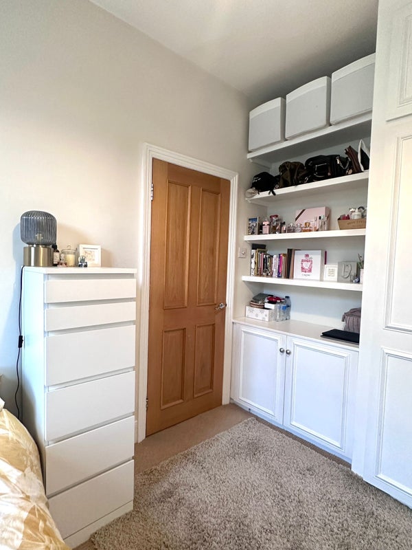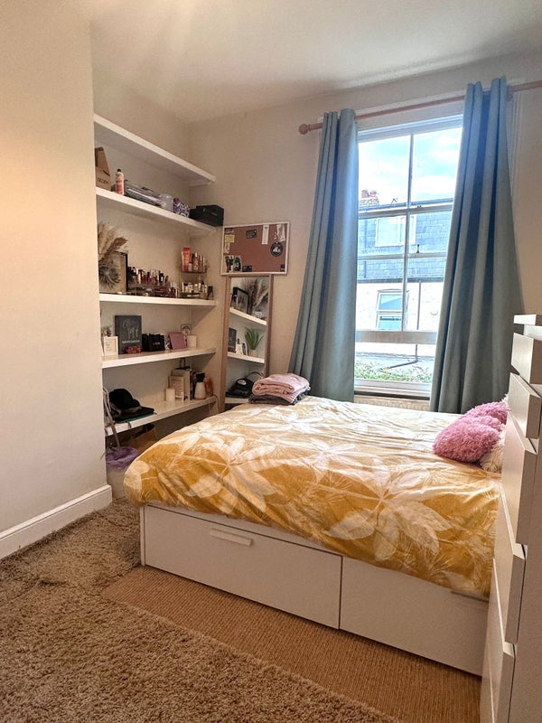 The double room is bright with lots of storage. The room comes furnished with the bed and side table. It can fit a small desk. You would share the bathroom with only one housemate. We also have a separate drying room which is super useful! The house is spacious with a lot of character and amazing natural light, it has a really homey vibe.