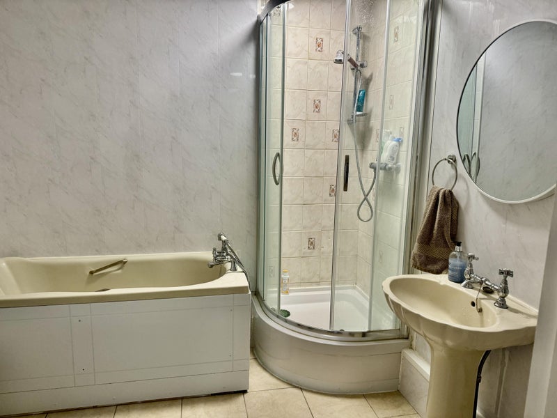 The living room has a big south facing window - it feels very light and airy. There are 2 bathrooms: one large bathroom with toilets and another separate toilets.