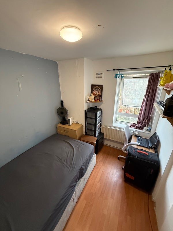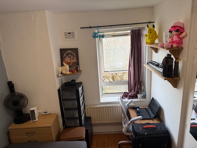 The room comes fully furnished with a bed, wardrobe, and desk — perfect for working professionals or students. The flat is tidy and quiet, shared with friendly and respectful housemates.