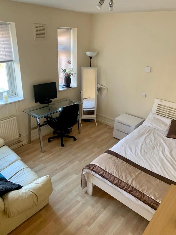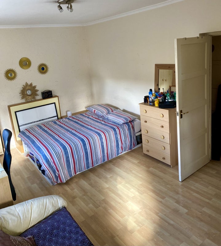 The room is beautiful gets plenty of light with large window and window door leading to a lovely balcony - It has 1 dbl bed, 1 wardrobe, 2 chest of drawers, a desk with office chair, 1 standing mirror and a 2 seats sofa. Plenty of space for yourself only.