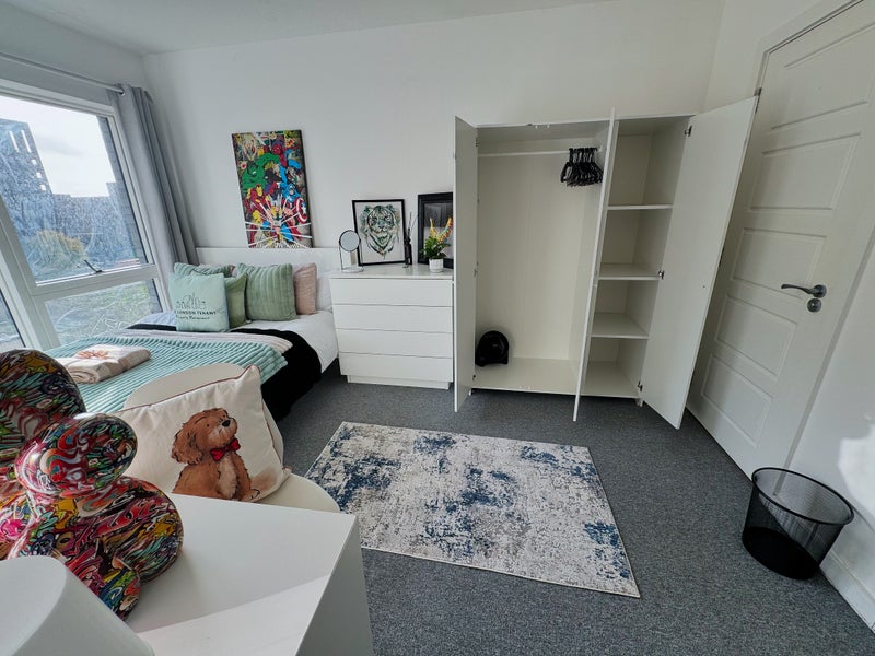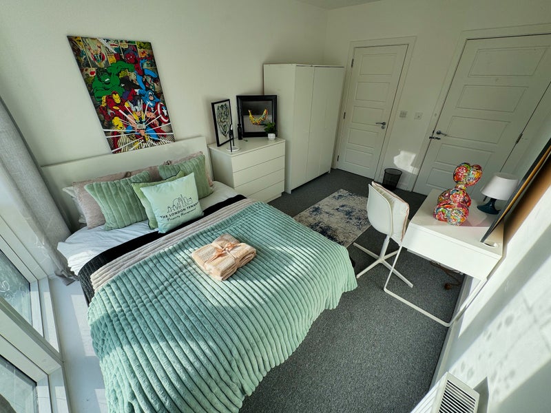 Stylish ensuite room in a contemporary riverside development located in the prestigious Royal Wharf area. Ideal for professionals seeking comfort, privacy, and excellent connections.