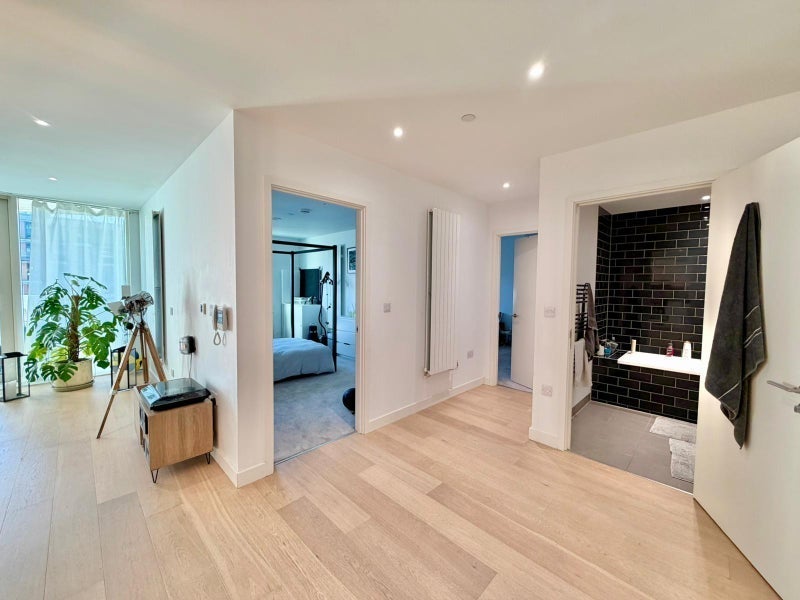 A large, bright en-suite double room is available in a modern 2-bed, 2-bath flat in Carrick House, E16 2SS. The flat is shared with 1 male young professional and offers a comfortable, clean, and respectful living environment.