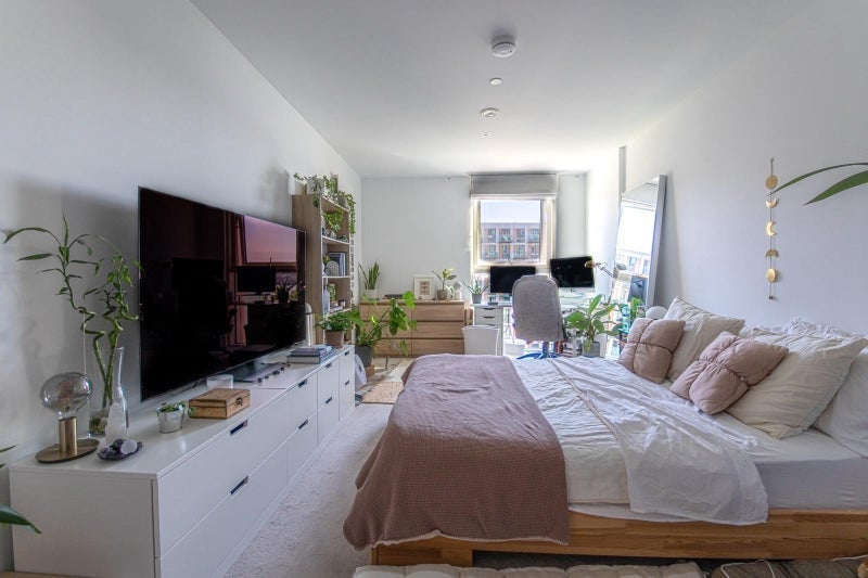 A large, bright en-suite double room is available in a modern 2-bed, 2-bath flat in Carrick House, E16 2SS. The flat is shared with 1 male young professional and offers a comfortable, clean, and respectful living environment.