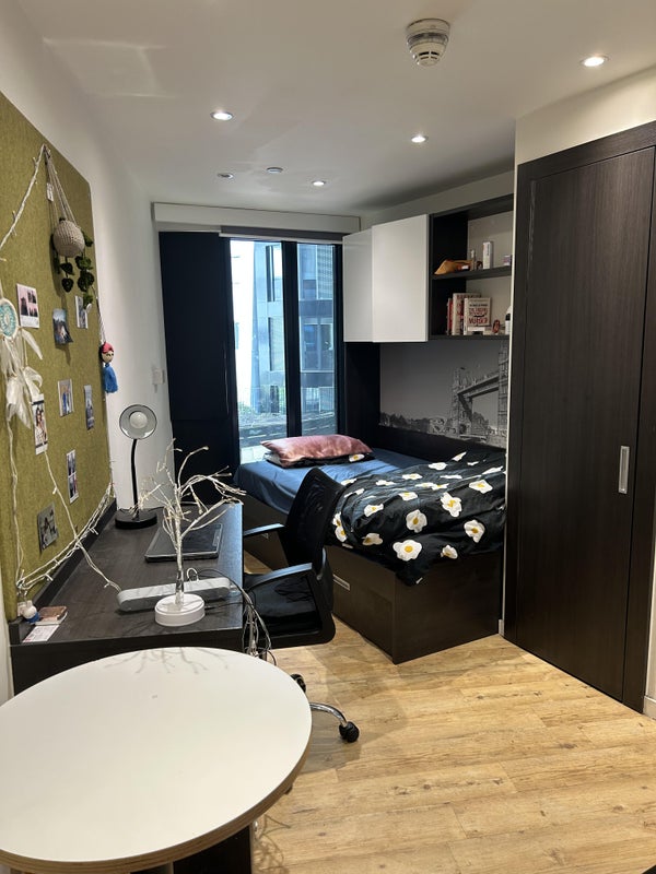 This is a studio room available from June 15th-September 5th FOR LSE STUDENTS ONLY. The room has a furnished bed, desk, kitchen (with a refrigerator, oven, microwave, sink, electric hobb and lots of storage space) and large bathroom attached to it.