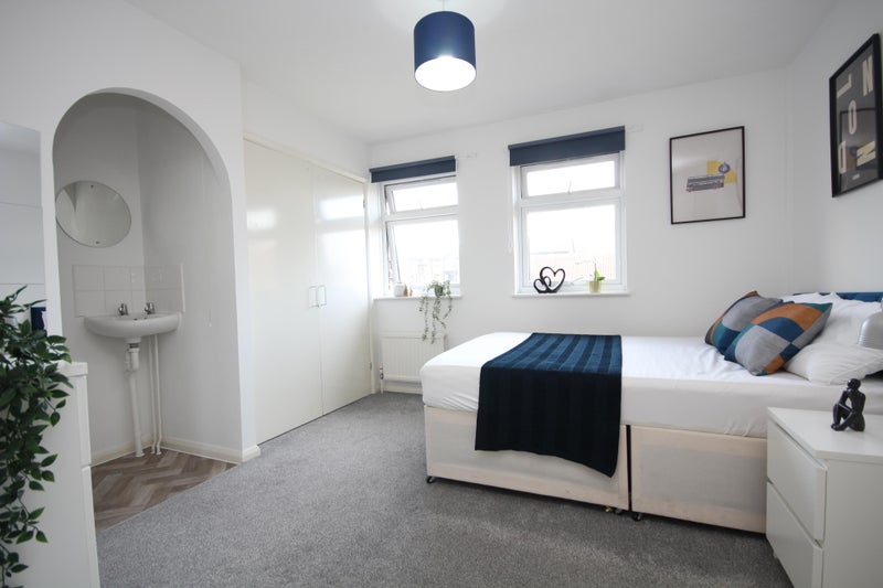 Room 3 (111 Sterling Place): Beautiful double en-suite (shower+basin) with huge built in wardrobe, chest of drawers, bedside table and a double bed. AVAILABLE 01/05/26