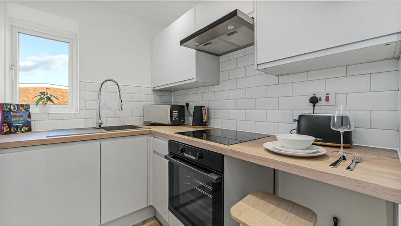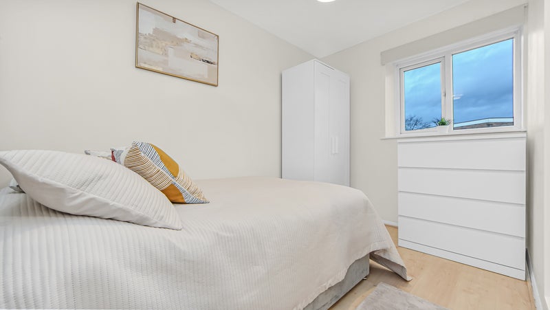 A cosy and well-designed room, fully furnished with a small double bed (with storage) and a wardrobe. The room includes a separate private bathroom exclusively for your use. For convenience, a kitchen is located on the same floor, which you will only share with one other housemate! 🌟
