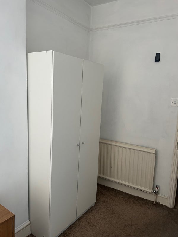 The room is on the first floor and has a double bed with 1 nightstand, wardrobe & chest of drawers.