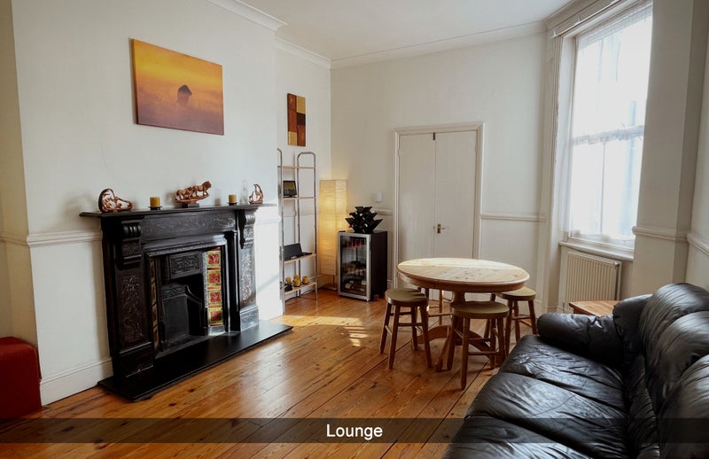 The common rooms in our flat include a lounge, a separate large kitchen, and two bathrooms. The flat is airy and gets plenty of natural light during the day.
